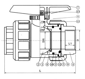 PPH承插焊球閥-Q61F塑料承插焊球閥規(guī)格尺寸表: